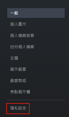在左側選單進入隱私設定界面